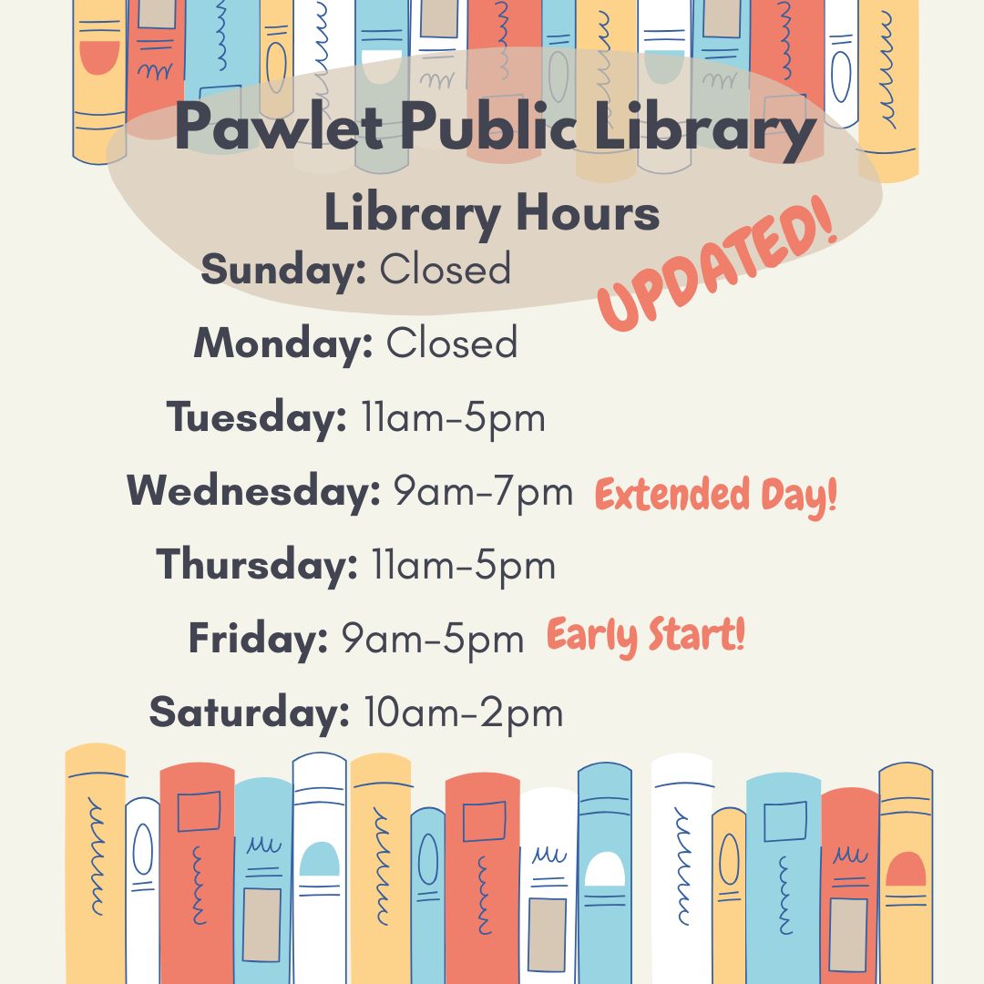 Please send a letter of interest, resume, & contact information for three references to crail.pawletpl@gmail.com or by mail to Pawlet Public Library – Director Search, P.O. Box 98, Pawlet, VT 05761. Applications received before March 17, 2026 will be given full consideration. We will be interviewing through March and April and hope to welcome our new team member as soon as possible following the interview process.