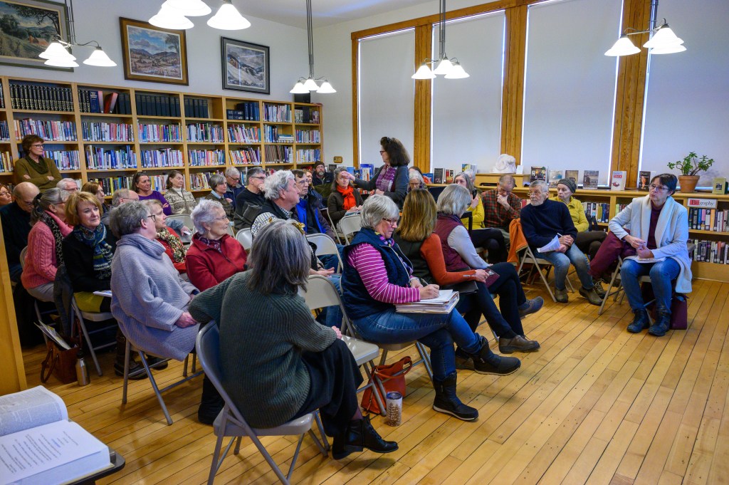 The Pawlet Public Library hosted a Community Information Meeting on Sunday, Feb.9 about Library accessibility improvements, to be voted at Town Meeting on March 3. The meeting included a presentation by the Library Board of Trustees, explaining the need for accessibility improvements, the options the Trustees considered, and the reasons they support building an enclosed addition with an ADA-compliant hydraulic lift and adjacent stairwell. This addition will make the main floor of the Library and the lower level Matt Waite Room fully accessible year-round.