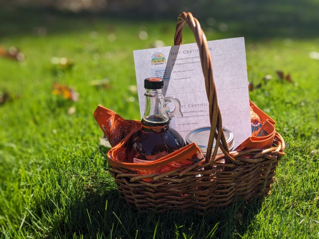 Enjoy some local flavors and bid on our Larson Farm Basket! This beautiful basket includes 3 gift certificates to Larson Farm & Creamery, one liter of pure Vermont maple syrup, and raw honey from 100 Acre Wood farm in West Pawlet.